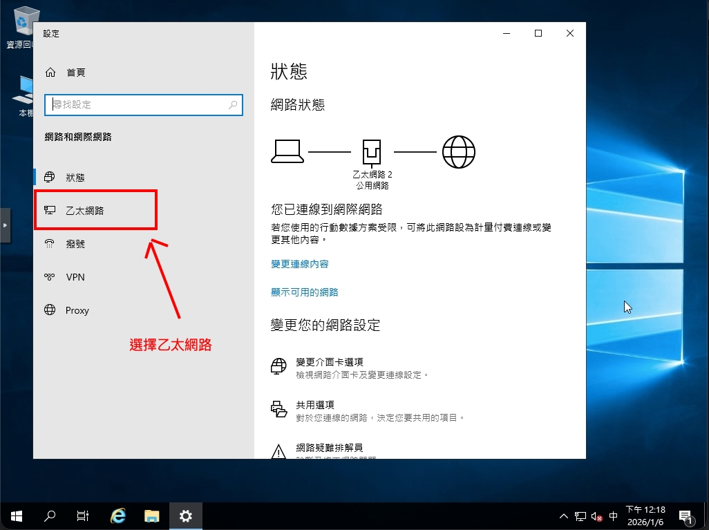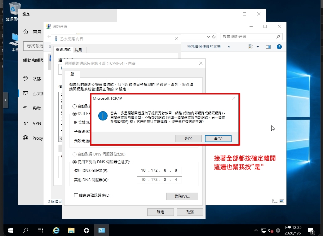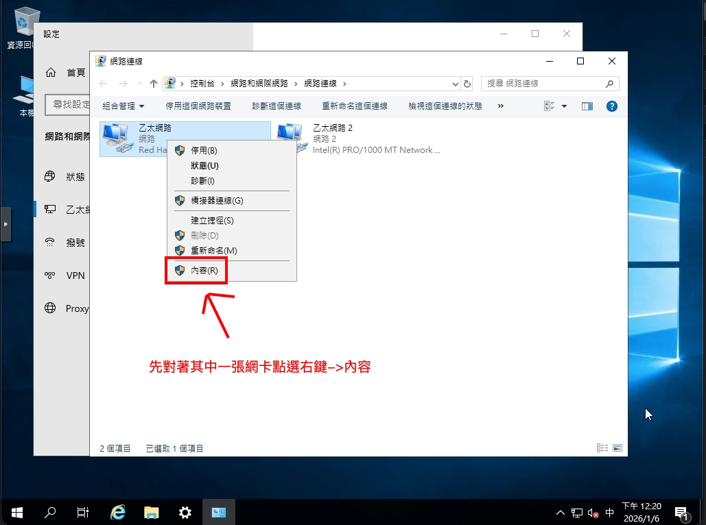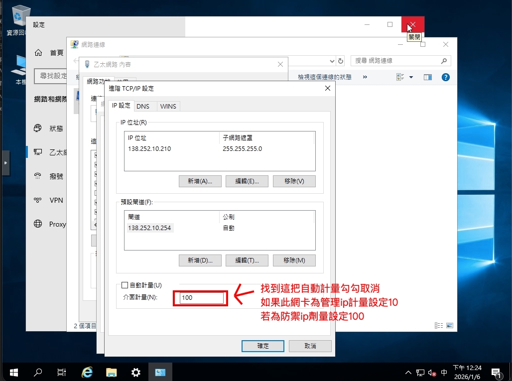所以我們要理用管理ip進行上網,使用windwos的介面計量,設定操作如下圖