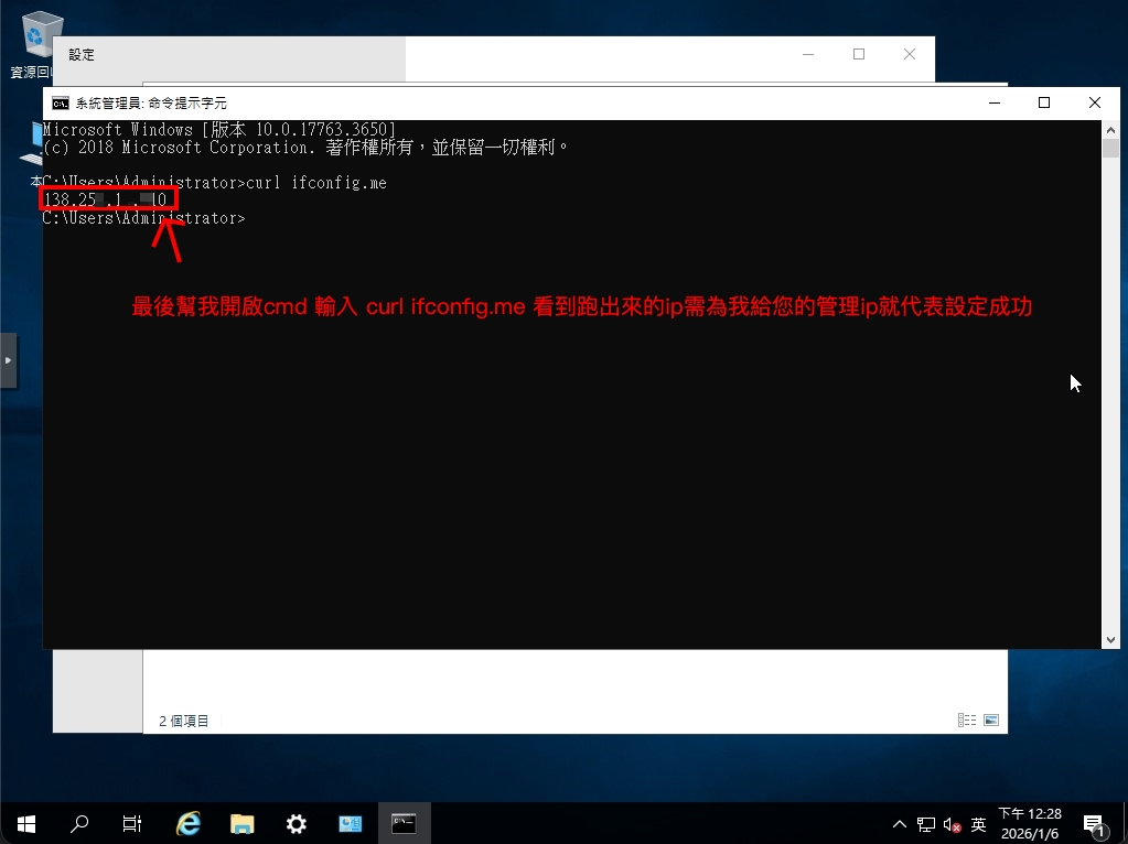 在取的伺服器資訊之後,您會拿到兩組ip位置 分別為管理ip以及防禦ip